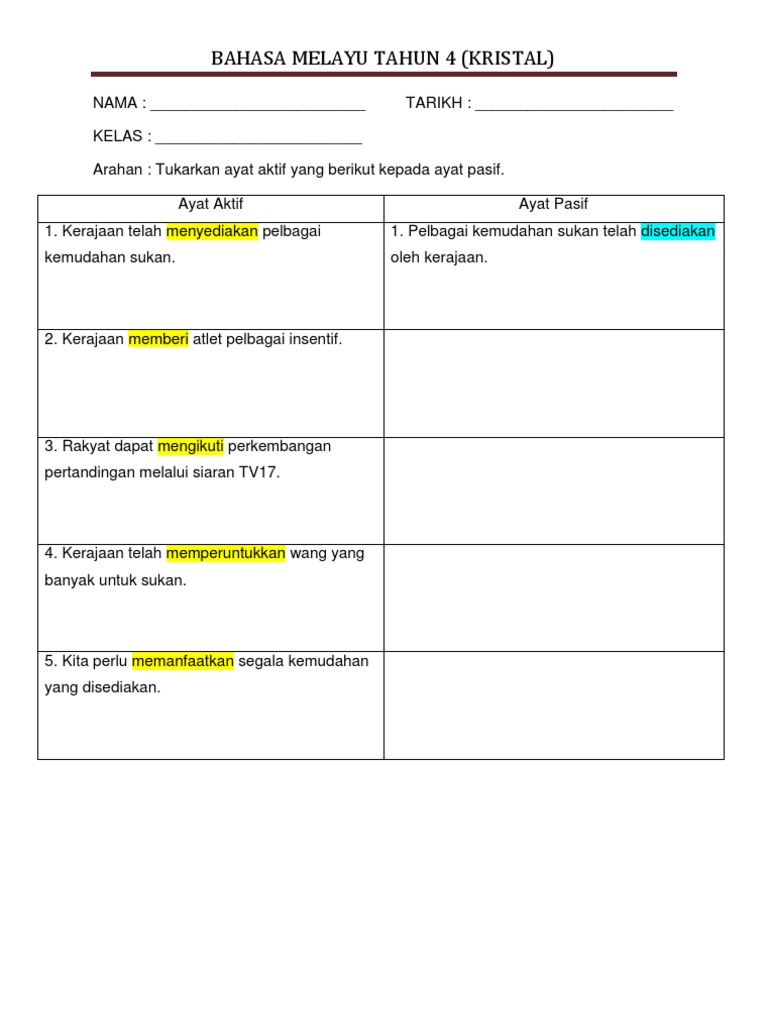 Bina Ayat SPM Soalan 3a 1. Coba kamu pilih satu.